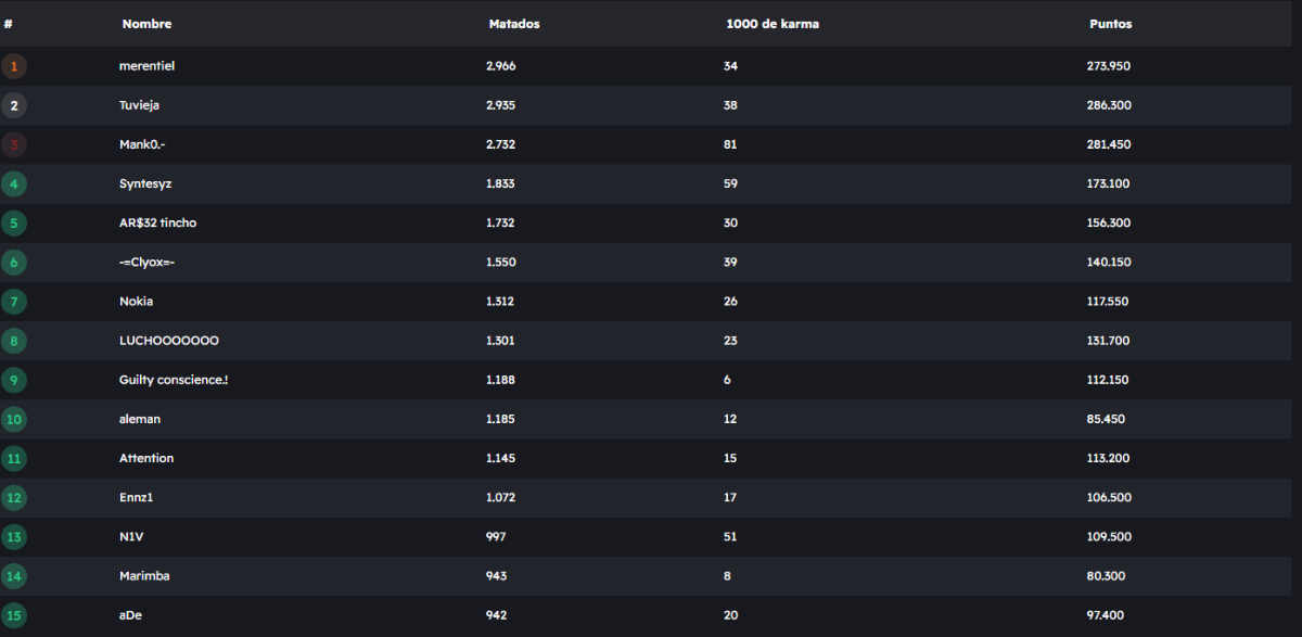 LautiiM Publicado el 6 de Abril, 2025 Compartir Publicado el 6 de Abril, 2025 GANADORES DEL SORTEO - TOP15 MATA AL TRAIDOR Buenas a todos le traemos el reinicio del TOP15 MENSUAL y Ganadores del sorteo JUGADORES QUE QUEDARON DENTRO DEL TOP15 Cita GANADORES DEL SORTEO @ tinchocjs @ QuaVo @Guilty conscience. Enlace al comentario Compartir en otros sitios Mas opciones de compartir...